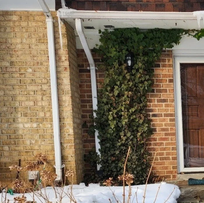 English ivy breaking through a porch ceiling into the house